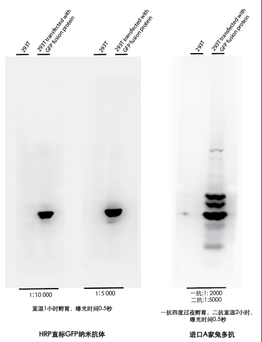 特异性:能够直接结合GFP,EGFP,acGFP,mEGFP等绿色荧光蛋白变体