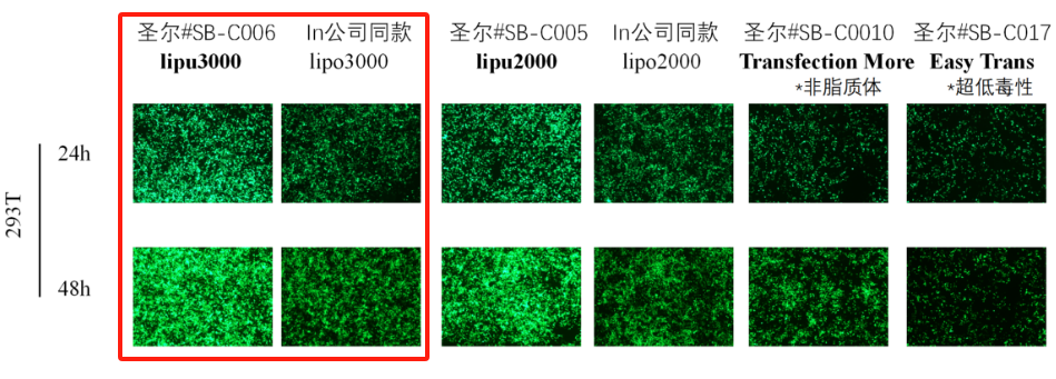 Lipu2000与国际同类产品转染效果对比: