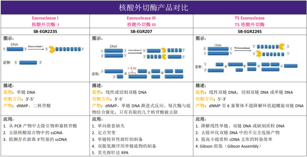 1.从PCR产物中去除引物和寡核苷酸:ExoI可去除PCR反应中未用完的引物以及扩增产生的多余的单链DNA。