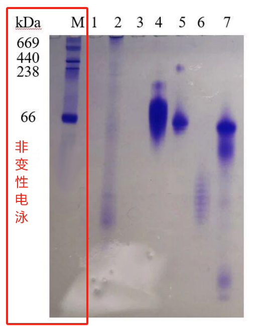 非变性聚丙烯酰胺凝胶和变性SDS-PAGE电泳在操作上基本上是相同的,只是非变性聚丙烯酰胺凝胶的配制和电泳缓冲液中不能含有变性剂如SDS等。一般蛋白进行非变性凝胶电泳要先分清是碱性还是酸性蛋白。分离碱性蛋白时候,要利用低pH凝胶系统,分离酸性蛋白时候,要利用高pH凝胶系统。